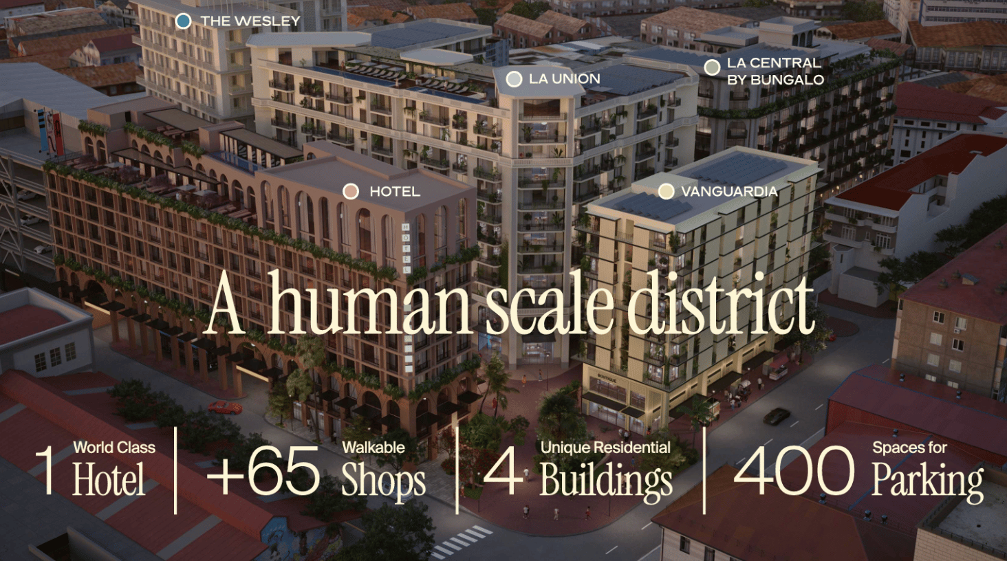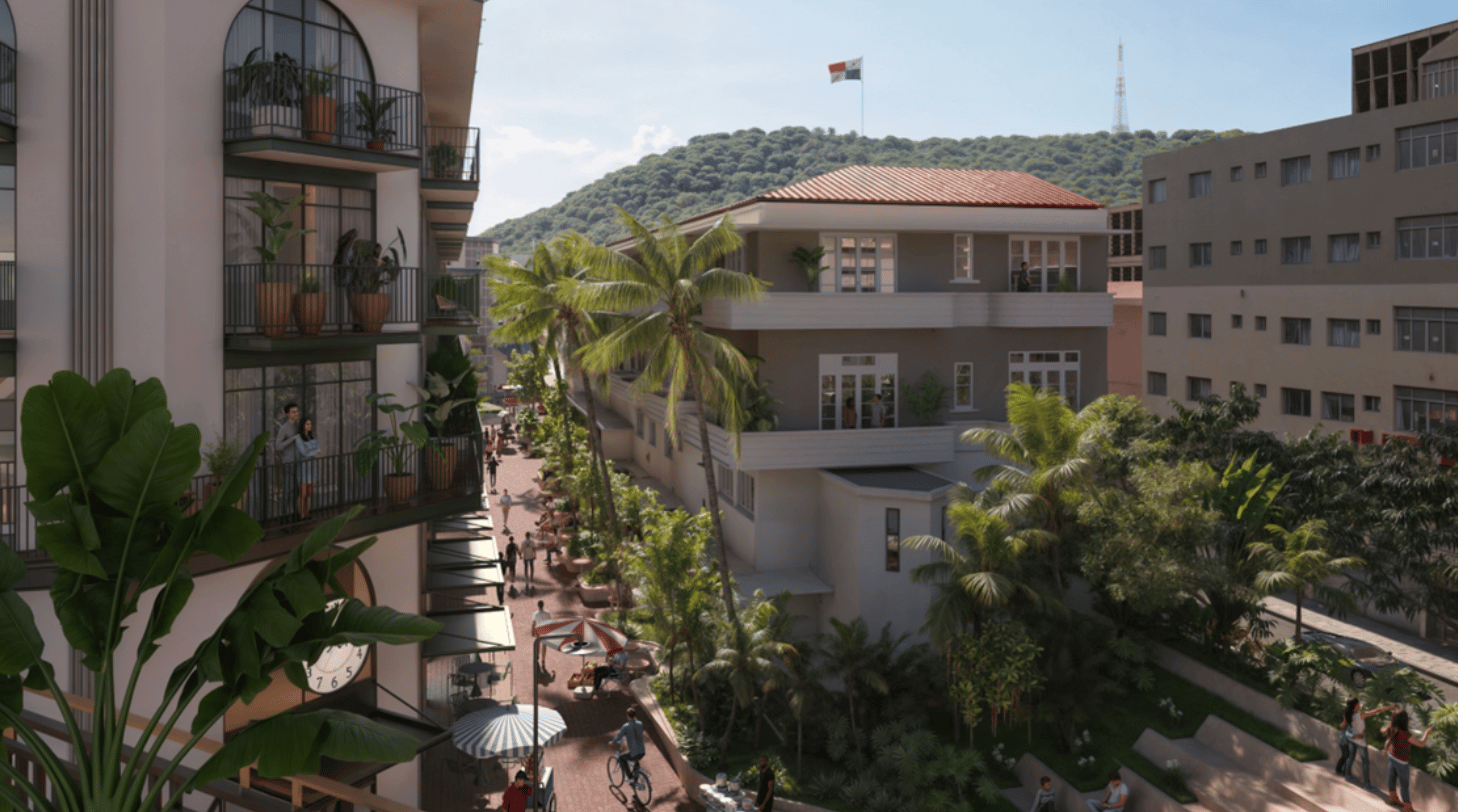 A landmark, full-block “urban village,” five mid-rise buildings by Conservatorio, the certified B Corp behind Casco Viejo icons like the American Trade Hotel and Santa Familia.