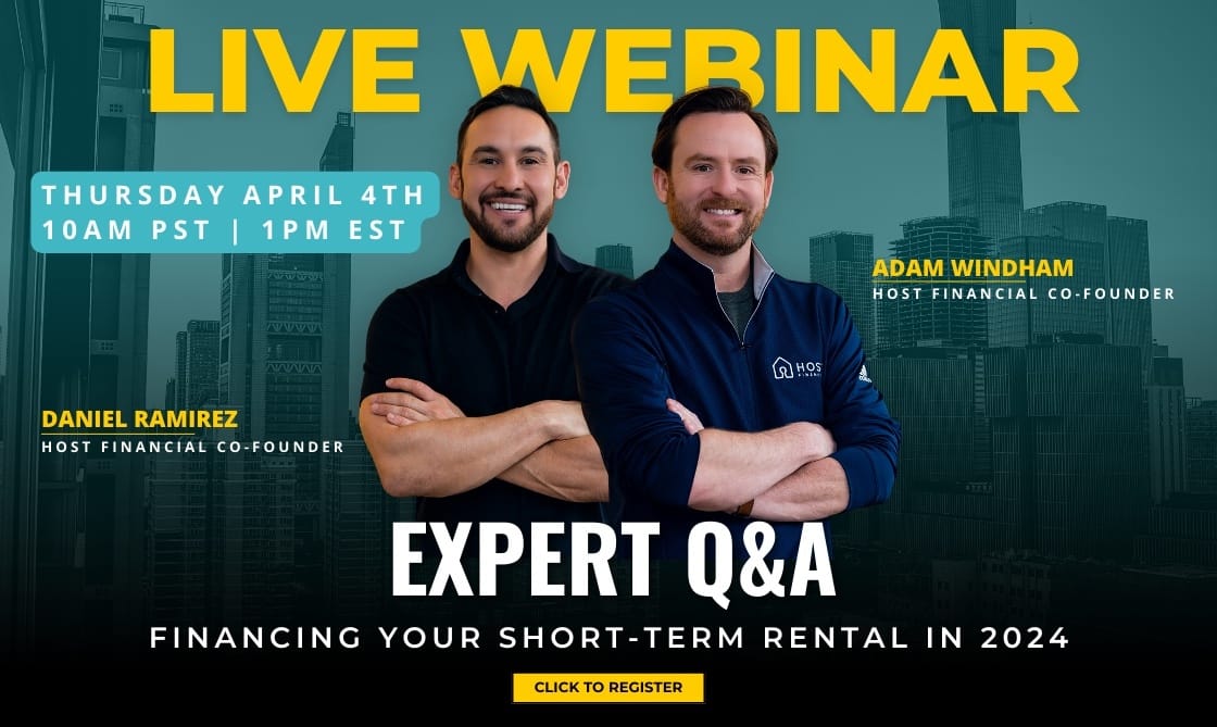 🔦 Register for Host Financial’s live Q&A webinar on April 4th at 12pm CST. Bring all of your STR lending questions for Co-founders Dan Ramirez and Adam Windham.