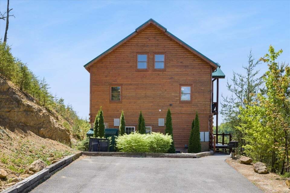 Spread out over 3 levels, with over 4,600 sqft. of living space, this magnificent cabin boasts 6 bedrooms, 6 bathrooms, a large game room, home theater, private indoor pool and outdoor hot tub.