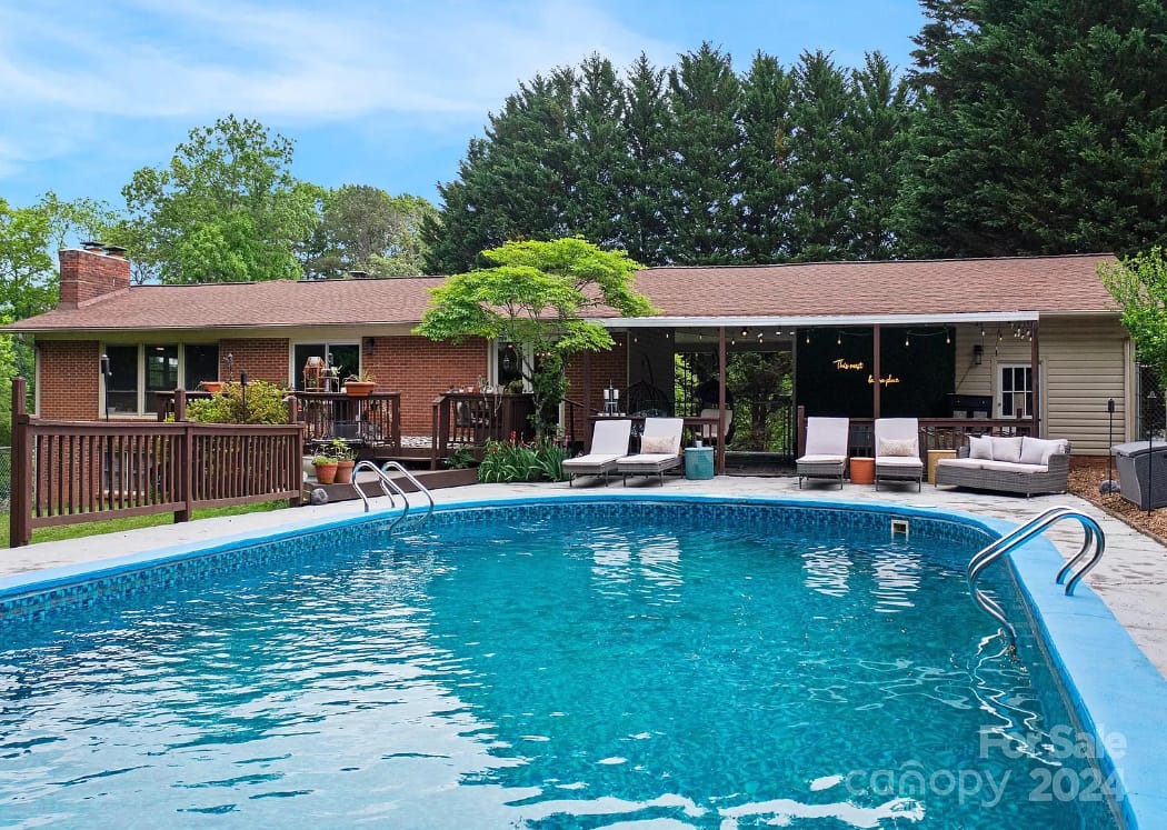 Experience modern comfort in this updated ranch-style STR, featuring an inviting in-ground pool. The main level offers 1 1/2 bathrooms, with 2 bedrooms converted into 1 large bedroom plus another large bedroom.