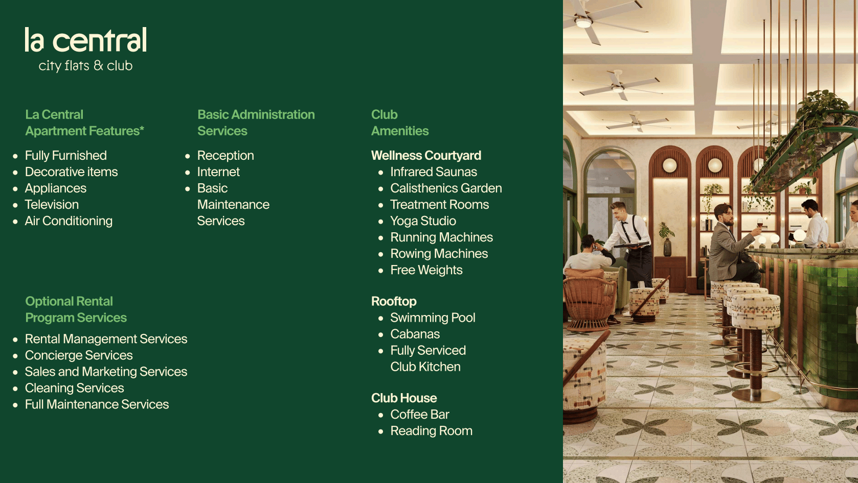 🏢 La Central City Flats & Club — Fully furnished, hotel-managed STR units for flexible income.
